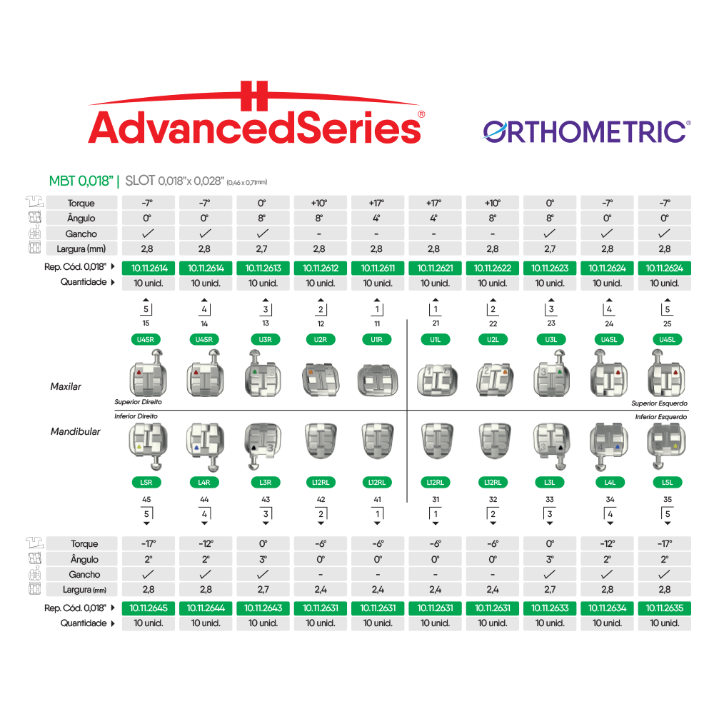 10.11.2600 – Bráquete de Aço Advanced Series MBT 0,018 1 Caso