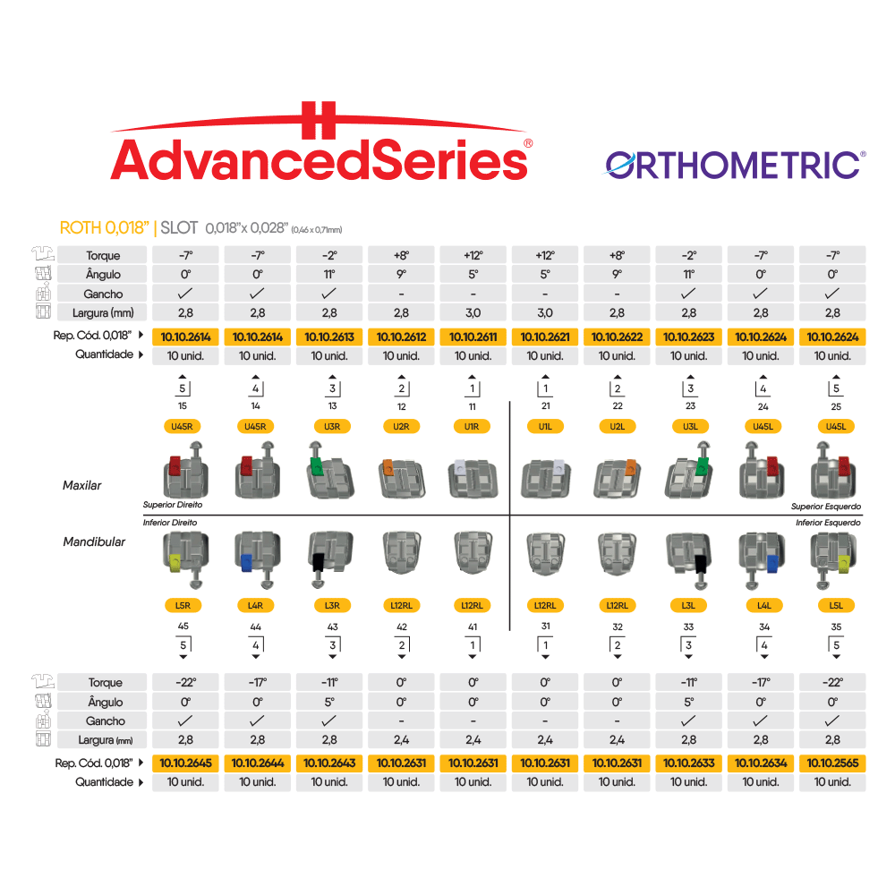 10.10.3001 – Bráquete de Aço Advanced Series Bidimensional Roth 0,022 e 0,018 100 Casos