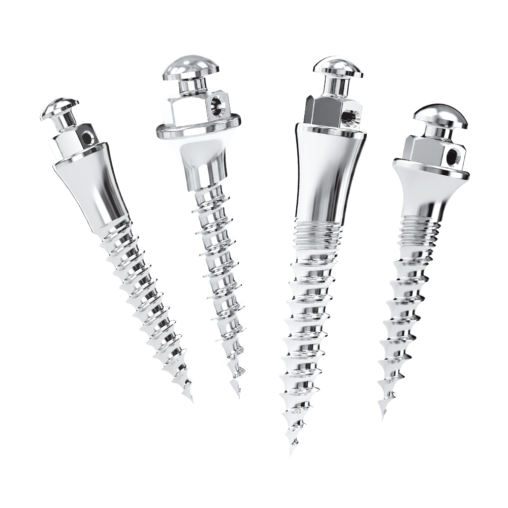 Desenvolvidos para regiões com osso cortical mais denso e aplicações de maior demanda mecânica, são indicados para mecânicas que exigem ancoragem esquelética prolongada e aplicação de forças mais intensas.